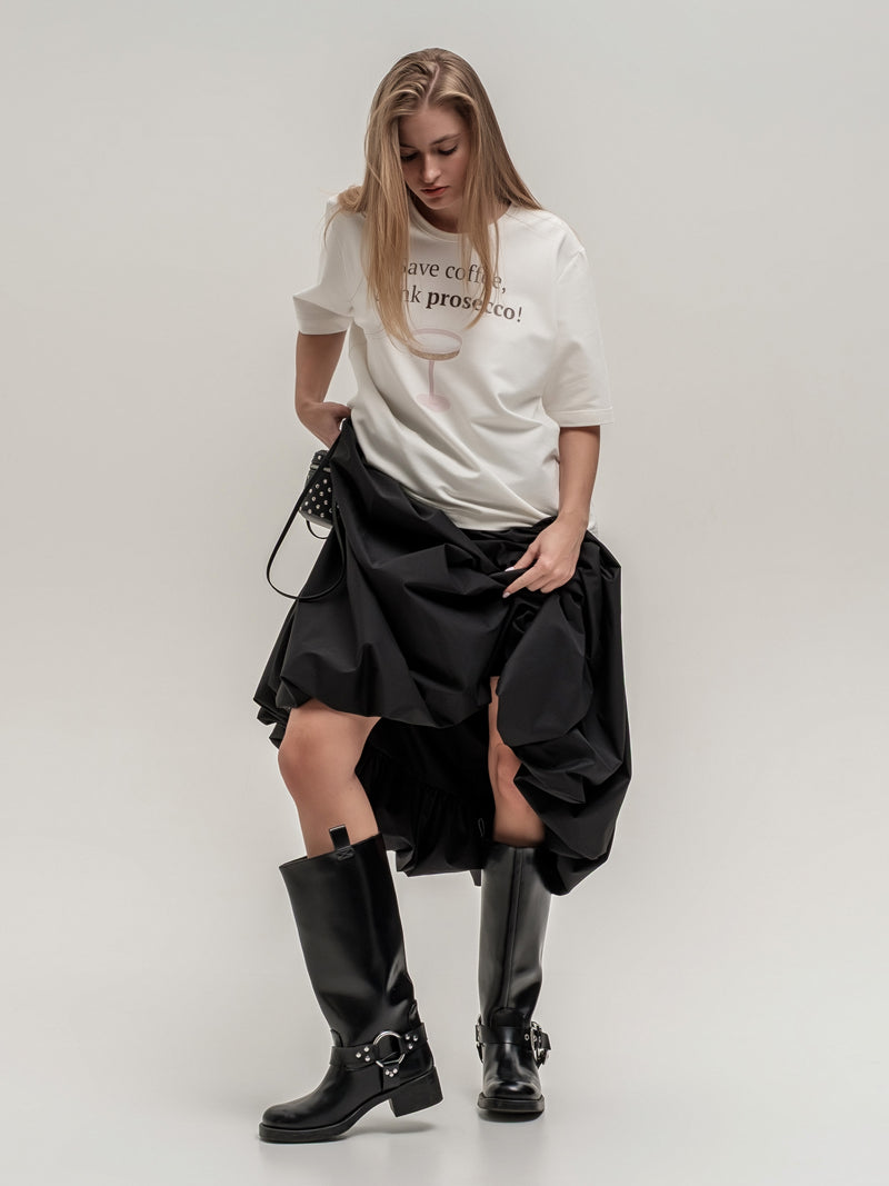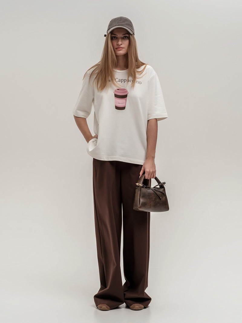 Brīva piegriezuma T-krekls ar dekoratīvu apakšmalu